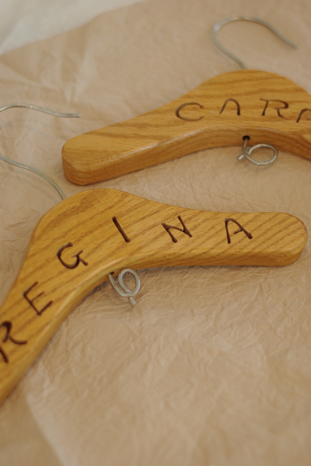 手触りのよい、木の香りがする手作りのハンガーを頂きました